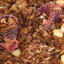 Thé vert de Chine Sencha, pommes, cannelle, amande, arôme naturel, pétales de rose, orange, clou de girofle, vanille.